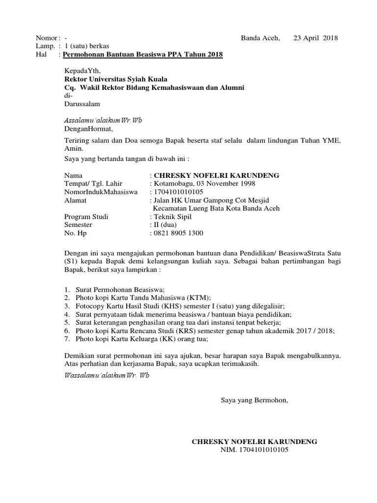 Dalam kesempatan kali ini akan saya coba berikan kepada para mahasiswa yang ingin membuat surat permohonan beasiswa studi atau belajar. Surat aktif kuliah · 4. Dengan penuh pengharapan kiranya saya dapat menerima bantuan dari bapak . Surat pemberitahuan libur lebaran kampus; Surat pernyataan penerima beasiswa kabupaten tana tidung.
